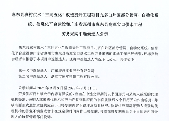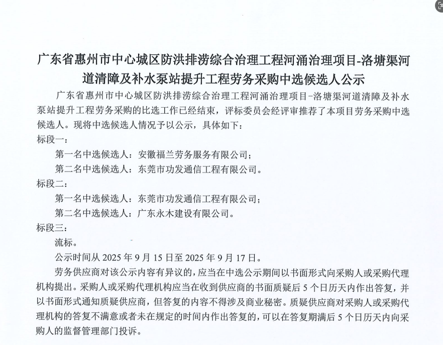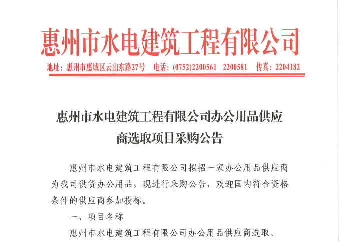 惠州市水電建筑工程有限公司勞務(wù)供應(yīng)商庫擴(kuò)庫評審結(jié)果公示……